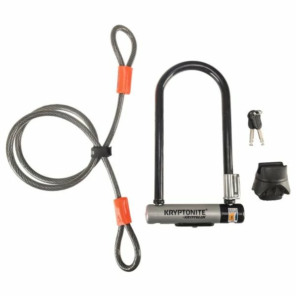 Le Kryptolok est livré avec 2 clés, un câble antivol Flex et un support de cadre qui facilite son transport.