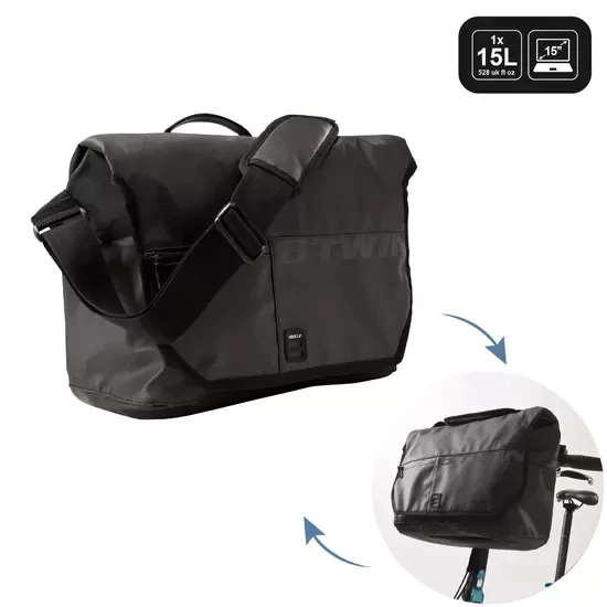 Une sacoche / besace qui se fixe sur le cintre lorsque vous roulez et qui se transporte à l’épaule lorsque vous laissez votre vélo. Passe du mode cycliste au mode piéton en deux gestes rapides