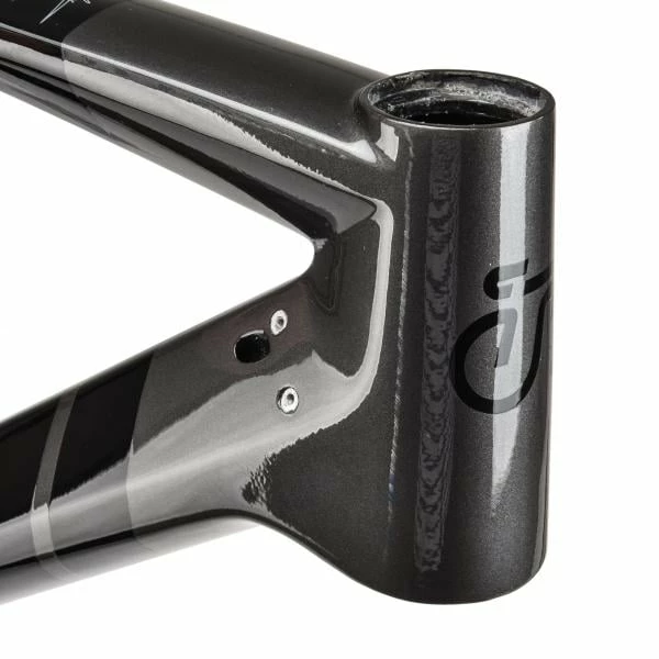 Le cadre et la fourche sont en fibre de carbone unidirectionnelle et haut-module, pour limiter le poids et conférer à l’ensemble un bon dynamisme. Un passage interne des câbles est prévu, pour présenter une finition des plus soignées.