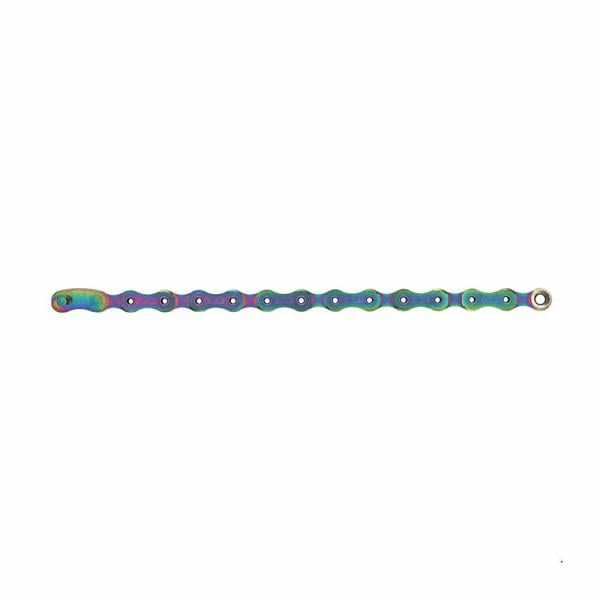 Cette chaîne pour transmission 12 vitesses SRAM PC XX1 Eagle RainBow est un modèle haut de gamme, partie intégrante du groupe SRAM XX1 Eagle AXS. Elle présente ce qui se fait de mieux en matière de transmission, avec notamment une conception soignée, garante de la robustesse et de la légèreté. Les maillons sont étudiés pour offrir une excellente précision des rapports et une longévité supérieure avec le traitement Hard Chrome.