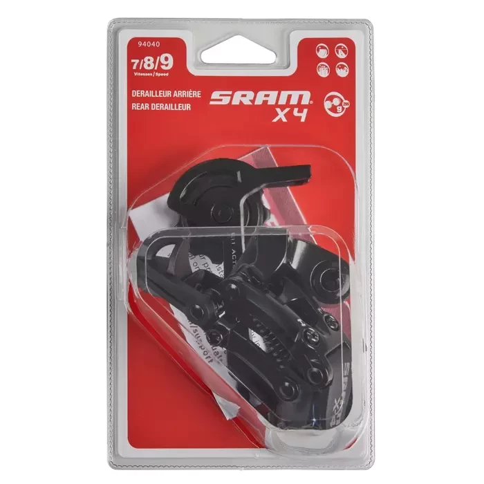 Dérailleur arrière SRAM X4 chape longue uniquement compatible avec manettes SRAM de 7 à 9 vitesses pour un passage de vitesse fluide et précis.