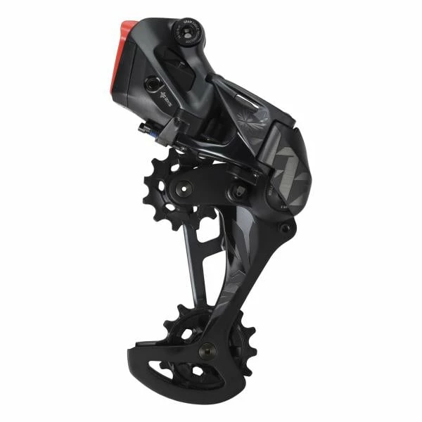 Entrez dans l’ère de l’électronique et roulez avec une transmission épuré, sans câbles, ni gaines grâce au dérailleur arrière SRAM XX1 Eagle AXS 12 vitesses destiné à un usage Cross-Country et Trail.