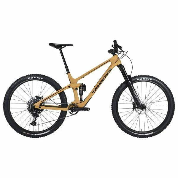 Transition a opté pour un équipement à l’image de ses valeurs : simple et efficace, afin de procurer un pilotage ludique et sans prise de tête. À l’instar des suspensions RockShox, auxquelles s’ajoutent une transmission mono plateau 12 vitesse SRAM NX Eagle, des freins de la marque et des roues Stans Flow D chaussants des pneus Maxxis. Enfin, le boîtier de pédalier externe, le dégagement pour pneus allant jusqu’à 2,6” et les emplacements pour porte-bidon et accessoires viennent parfaire l’ensemble.