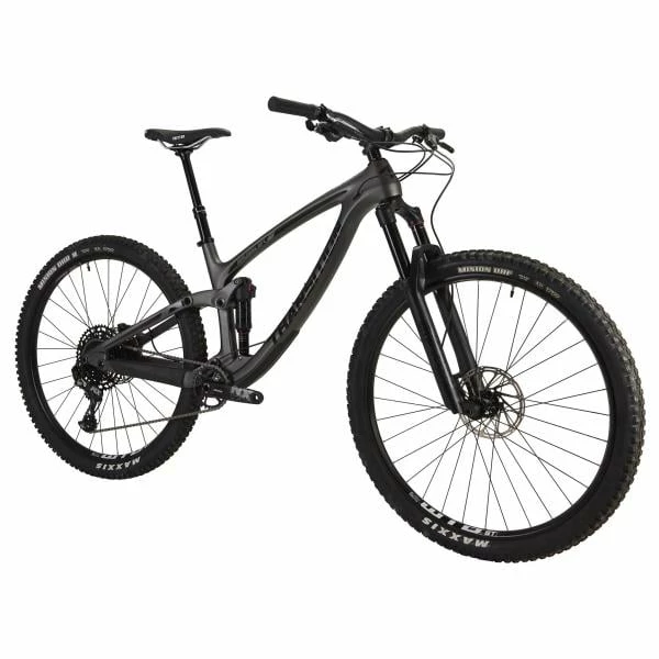 Il est équipé d’un amortisseur RockShox Deluxe RT, dont les 120 mm de débattement le destinent à un usage Enduro. La suspension est intégrée selon la fameuse cinématique GiddyUp 2.0HH, reconnue pour son efficacité au pédalage et à son excellente tenue de route dans le cassant. A l’avant, on retrouve une fourche Rockshox Revelation RC de 140mm calibrée pour absorber les obstacles avec une aisance incroyable. A cela s’ajoute une transmission 12 vitesses SRAM NX Eagle, des freins SRAM Level T et des roues WTB STi25 montées de pneus Maxxis Minion DHF Dual.